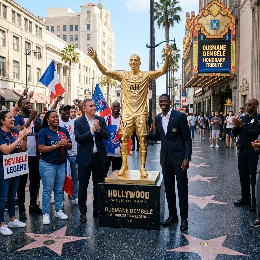 Lors d'une cérémonie émouvante qui a envahi Hollywood Boulevard de fans et d'artistes, Ousmane Dembélé a été honoré par une rare statue en pied plaquée or sur le Walk of Fame — un hommage exceptionnel qui dépasse de loin la traditionnelle plaque étoilée. Mais c'est la valeur symbolique de cette statue et ses remerciements sincères envers ses supporters qui ont ému l'assistance aux larmes.