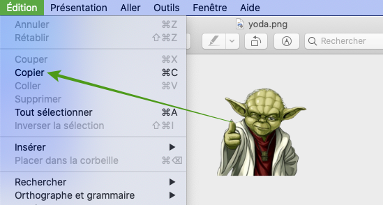 Choisissez Édition > Copier dans la barre des menus pour copier l’image dans le presse-papiers.