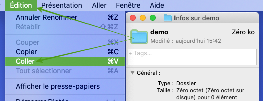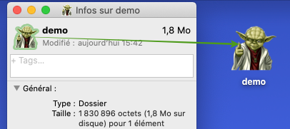 Dans la fenêtre d’informations, cliquez sur la petite icône située en haut de la fenêtre, sous la barre de titre.