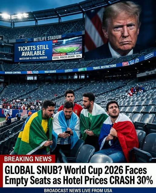 (Traduction : Refus mondial ? Coupe du monde 2026. Face aux sièges vides et aux prix des hôtels qui chutent de 30%)